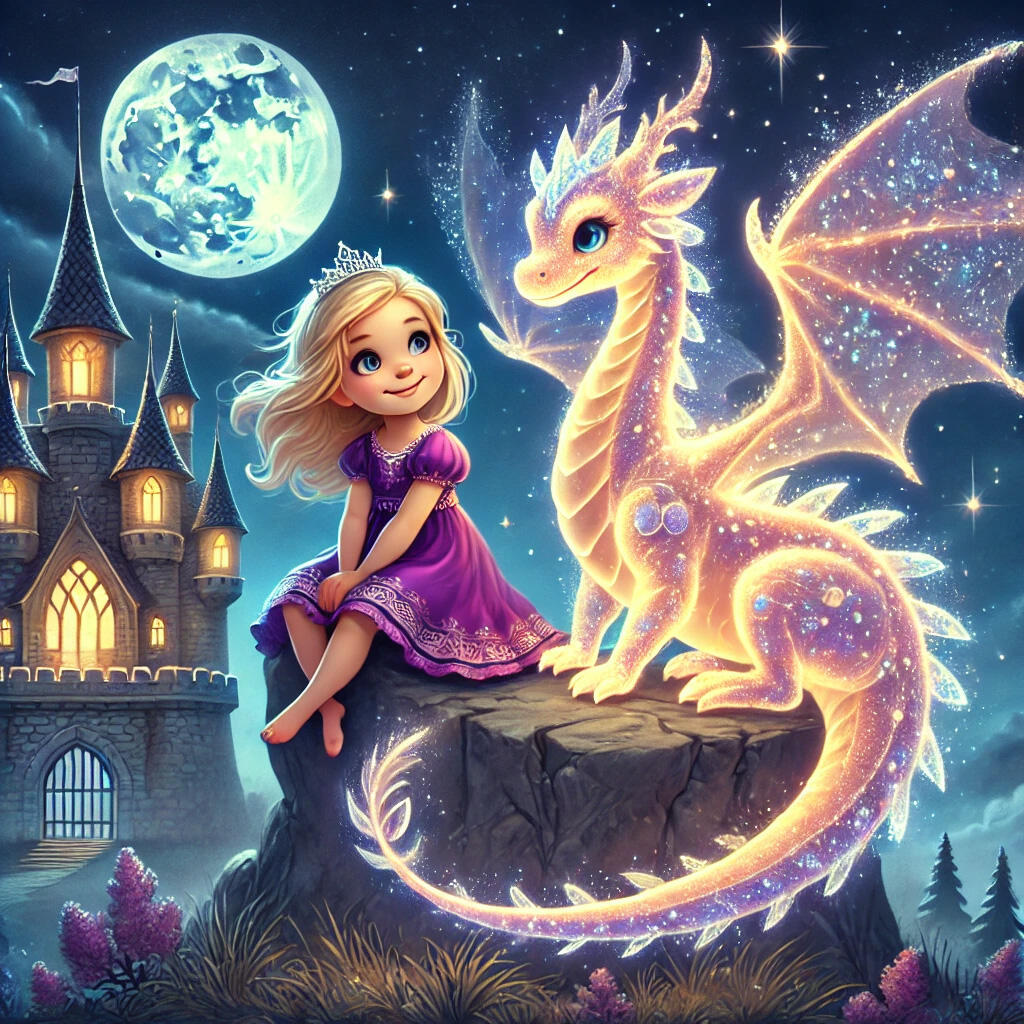 a rhyming children's picture book story about a friendly dragon named Fluffy who lives in a floating castle in the sky.